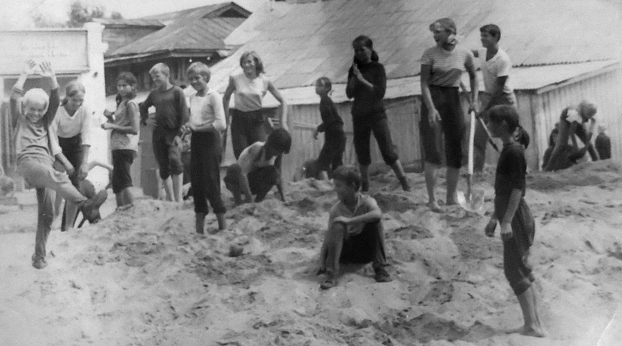 Слева - тренировка на ж/д насыпи весной. В первом ряду старшие девушки слева направо: Наташа Пупышко, Софа Косинская, Ира Наливайко. Справа - так выглядел стадион. Имя прыгуна неизвестно. Спортивный лагерьВ летнее время тренировки проводились в спортивном лагере, который первоначально находился на берегу реки Яя, затем - в поселке Причулымск. Так, в 1971 году лагерь располагался на берегу реки Яя, недалеко от пионерского лагеря "Колосок". Лагерь действовал с 25 июня по 18 июля 1971 г. В нем проживали 43 учащихся ДЮСШ. Силами учащихся была сделана беговая дорожка длиной 300 метров, оборудовано футбольное поле, сектора для прыжков и метаний, построен переход к месту купания. Четырехразовое питание было организовано в лагере "Колосок". Помимо спортивных мероприятий, проведен "День Нептуна", Военно-спортивная игра. Начальником лагеря был Н. Оськин. Информация из Муниципального архива администрации Аиновского района. На фотографиях - жизнь в лагере в 1971 году. Фотографии из Муниципального архива администрации Асиновского района.